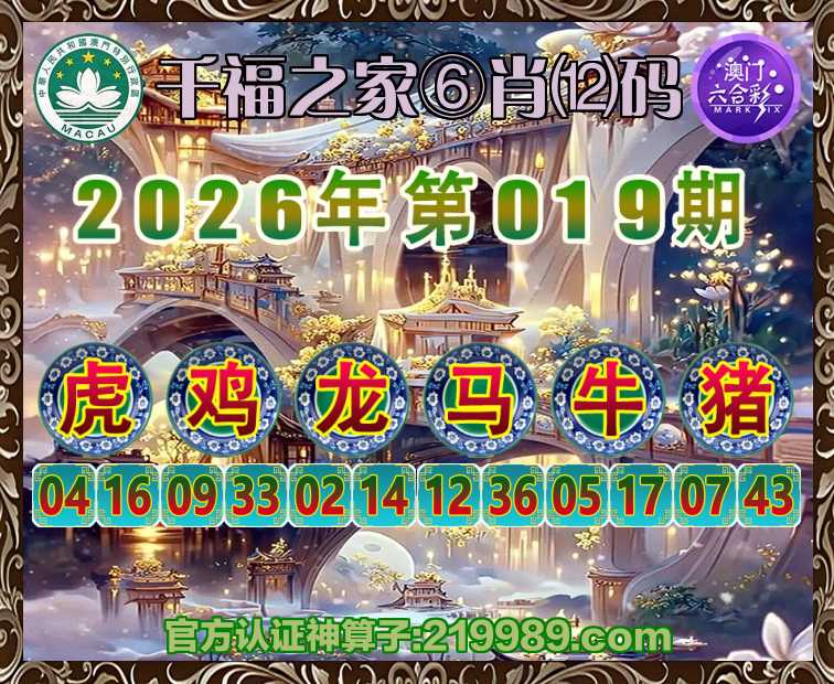 019期:《千福之家》 🧧⑥肖⑿码🧧【虎鸡龙马牛猪】开:00准