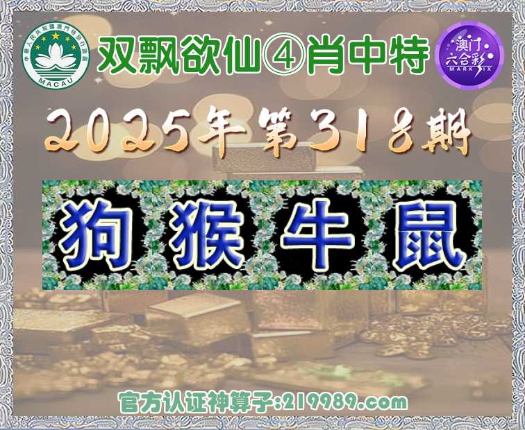 318期: 🍟『双飘欲仙』 🍟④肖中特🍟【狗.猴.牛.】开:鼠06