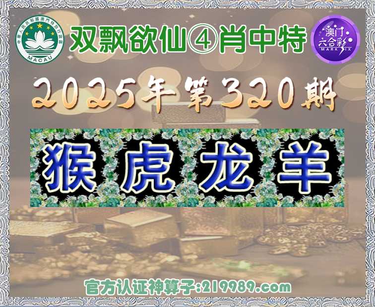 320期: 🍟『双飘欲仙』 🍟④肖中特🍟【猴..龙.羊】开:虎28