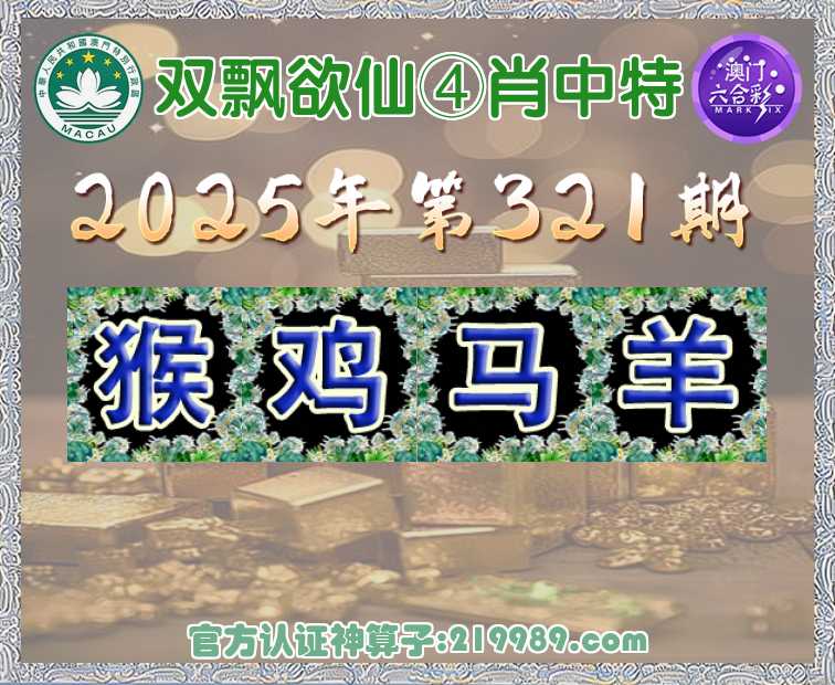 321期: 🍟『双飘欲仙』 🍟④肖中特🍟【猴.鸡.马.】开:羊23