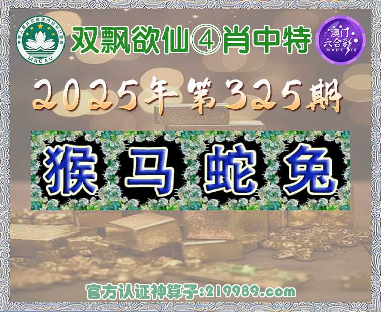 325期: 🍟『双飘欲仙』 🍟④肖中特🍟【猴.马.蛇.兔】开:虎04