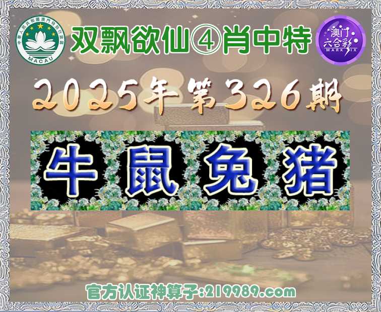 326期: 🍟『双飘欲仙』 🍟④肖中特🍟【牛.鼠.兔.】开:猪19