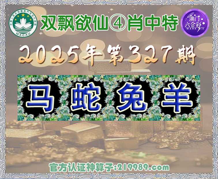 327期: 🍟『双飘欲仙』 🍟④肖中特🍟【马..兔.羊】开:蛇37