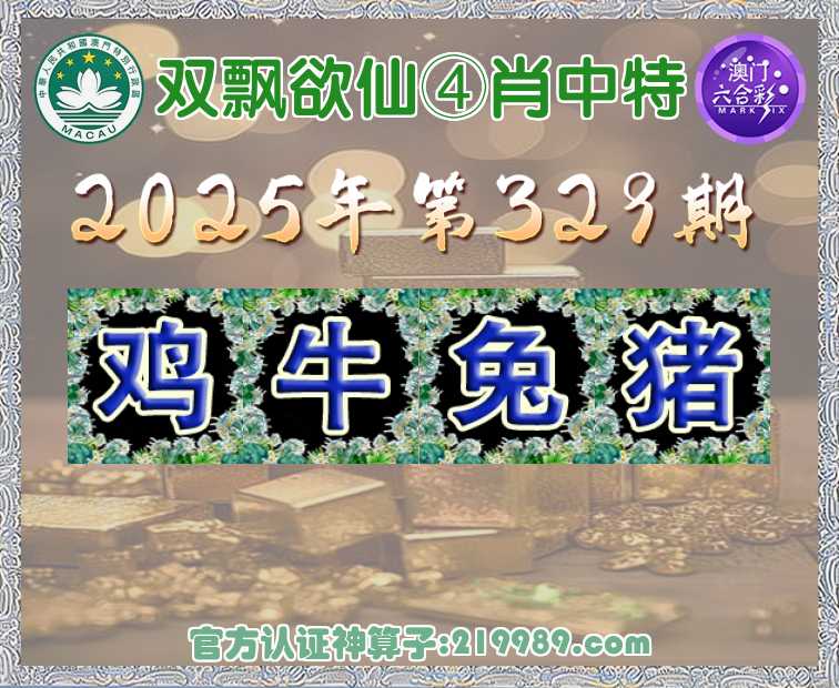 329期: 🍟『双飘欲仙』 🍟④肖中特🍟【鸡..兔.猪】开:牛17