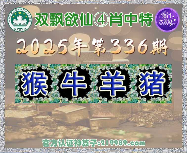 336期: 🍟『双飘欲仙』 🍟④肖中特🍟【猴..羊.猪】开:牛17