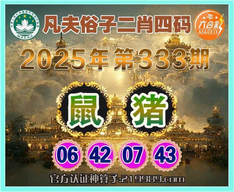 333期: 🎯『凡夫俗子』 🎯二肖四码🎯【猪】【06.42.07.43】开:鼠06