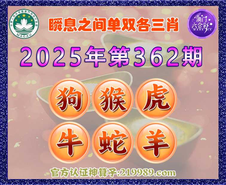 362期:【瞬息之间】 🥰单双各三肖🥰【狗.猴.虎.牛.蛇.】开:羊23