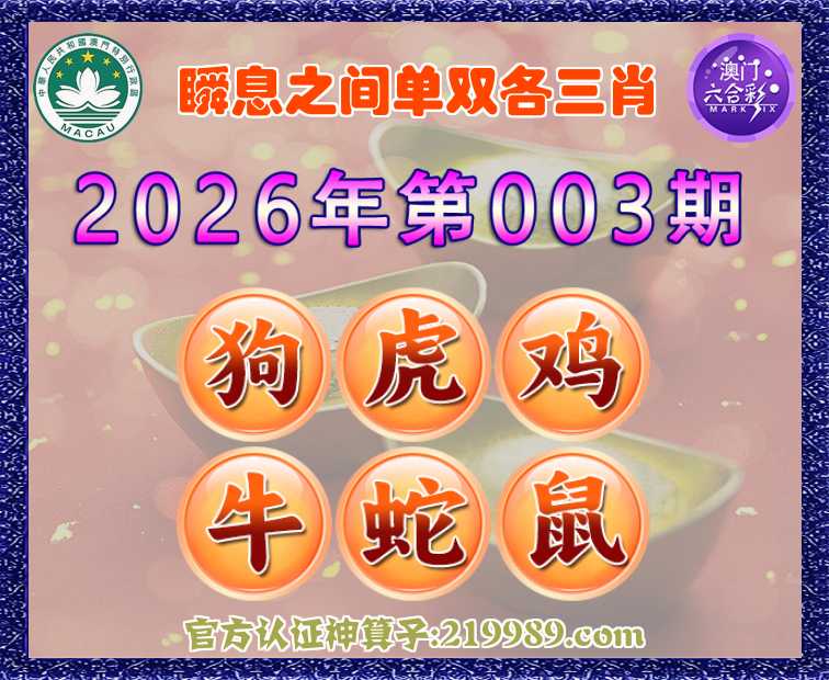 003期:【瞬息之间】 🥰单双各三肖🥰【狗.虎..牛.蛇.鼠】开:鸡09
