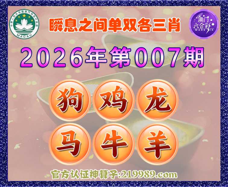 007期:【瞬息之间】 🥰单双各三肖🥰【狗.鸡.龙.马..羊】开:牛41