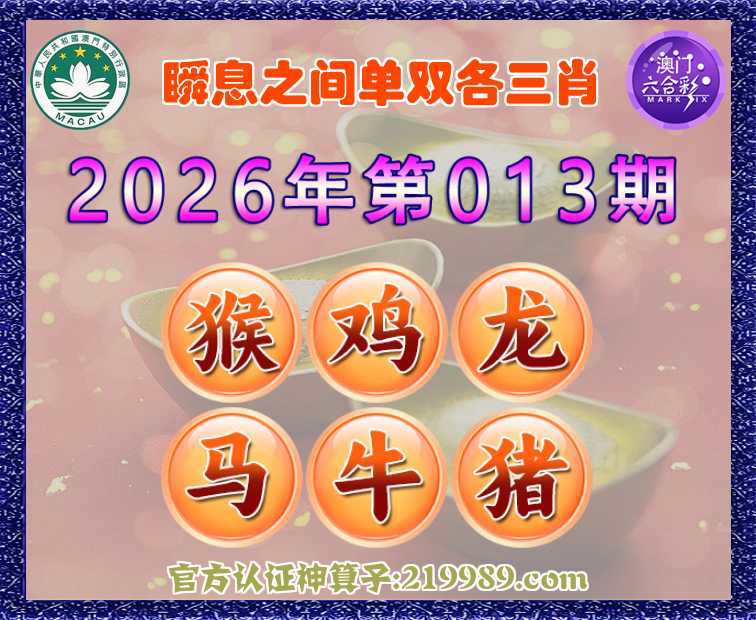 013期:【瞬息之间】 🥰单双各三肖🥰【猴.鸡.龙.马.牛.猪】开:蛇01