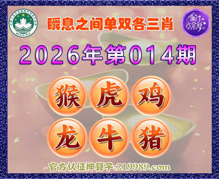 014期:【瞬息之间】 🥰单双各三肖🥰【猴.虎.鸡..牛.猪】开:龙26