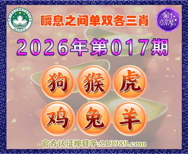 017期:【瞬息之间】 🥰单双各三肖🥰【.猴.虎.鸡.兔.羊】开:狗32