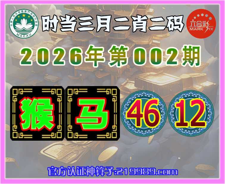 002期:〖时当三月〗 ♣️二肖二码♣️【马】【46.12】开:猴22