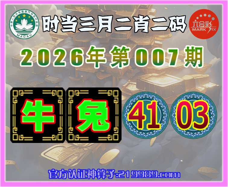 007期:〖时当三月〗 ♣️二肖二码♣️【兔】【41.03】开:牛41