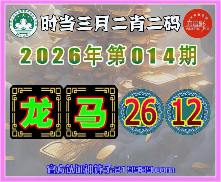 014期:〖时当三月〗 ♣️二肖二码♣️【马】【26.12】开:龙26