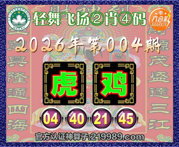004期:『轻舞飞扬』 🍁②肖④码🍁【虎】【04.40.21.45】开:鸡45