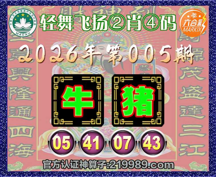 005期:『轻舞飞扬』 🍁②肖④码🍁【牛】【05.41.07.43】开:猪43