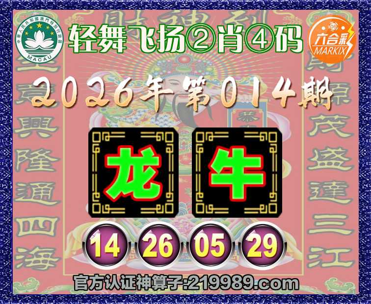 014期:『轻舞飞扬』 🍁②肖④码🍁【牛】【14.26.05.29】开:龙26