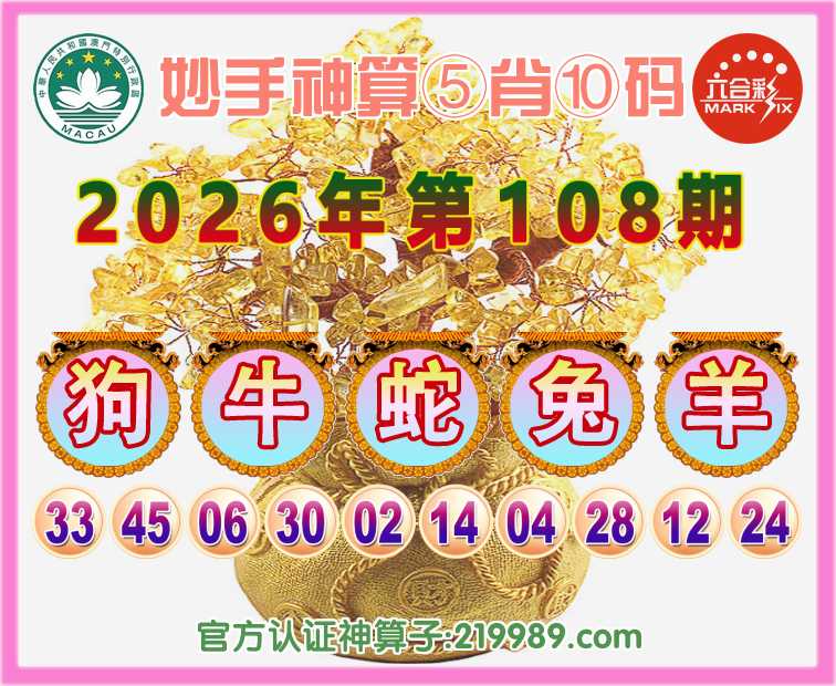 108期: 🕯『妙手神算』 🕯⑤肖⑩码🕯【牛蛇兔羊】开:狗45