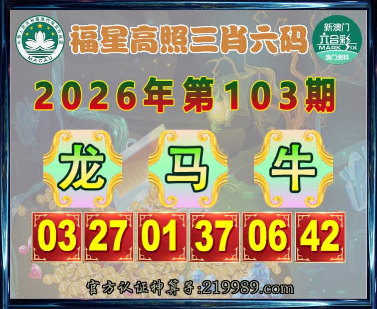 103期: 福星高照 🎯三肖六码🎯【龙马】开:牛06