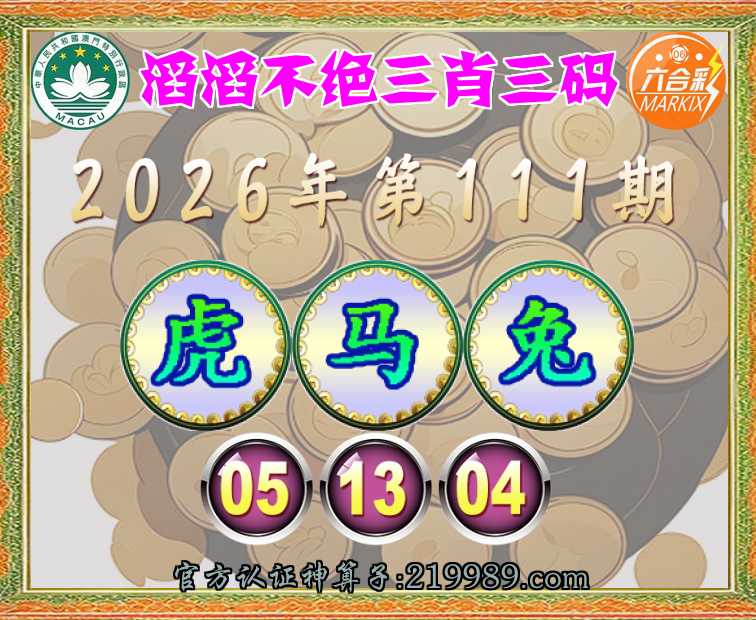 111期:《滔滔不绝》 🥽三肖三码🥽【虎兔】【05.13.04】开:马01