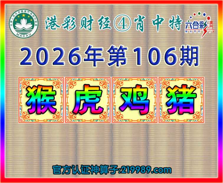 106期:『港彩财经』 🥓④肖中特🥓【猴.虎..猪】开:鸡22