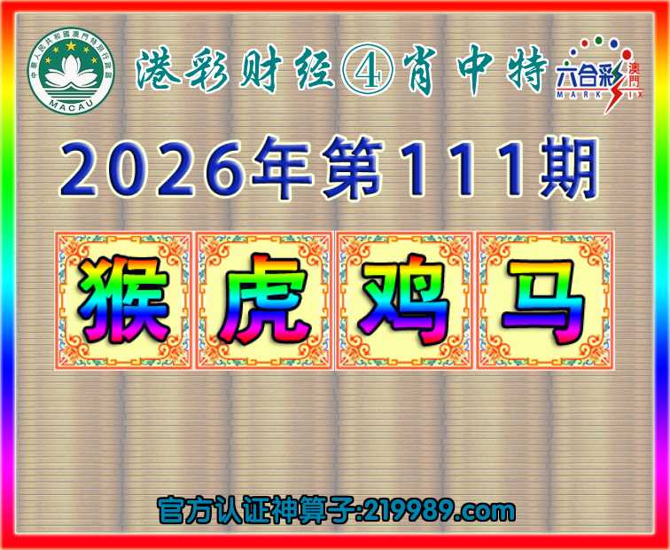 111期:『港彩财经』 🥓④肖中特🥓【猴.虎.鸡.】开:马01