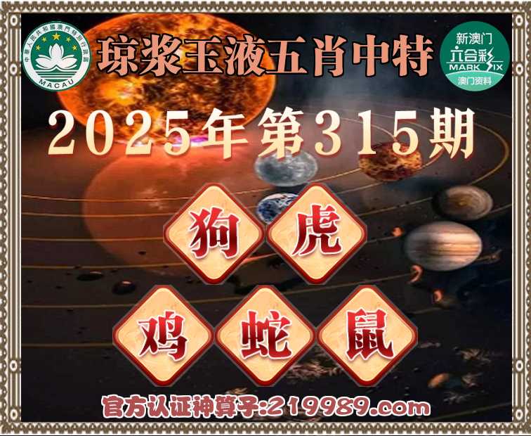 315期: 🥧《琼浆玉液》 🥧五肖中特🥧【狗..鸡.蛇.鼠】开:虎04