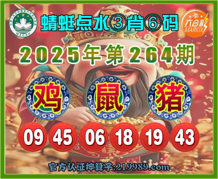 264期:〖蜻蜓点水〗 🥫③肖⑥码🥫【鸡鼠】开:猪43