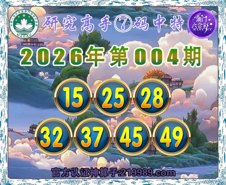 004期:『研究高手』 🏇⑦码中特🏇【15.25.28.32.37.45.49】开:45