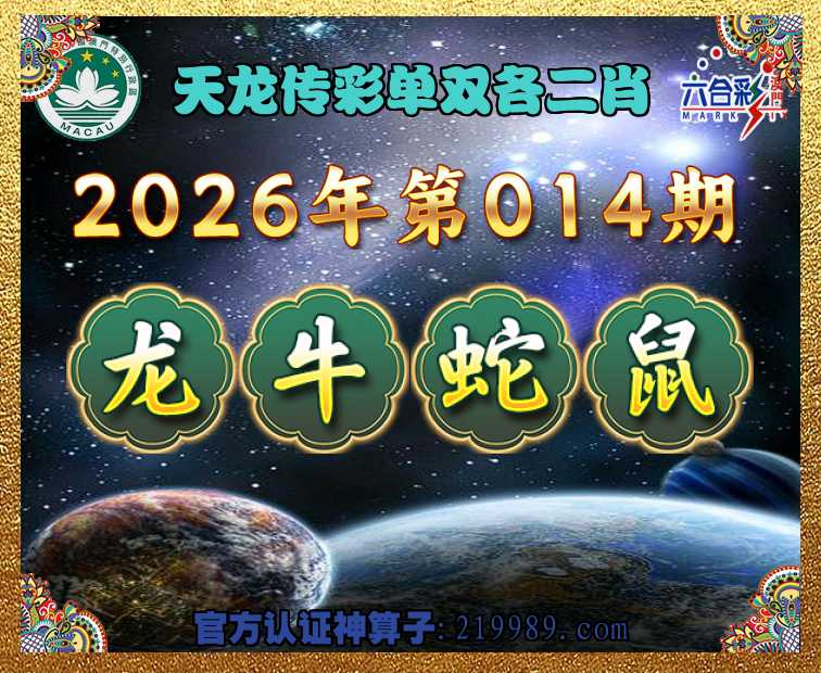 014期:【天龙传彩】 🥖单双各二肖🥖【.牛.蛇.鼠】开:龙26