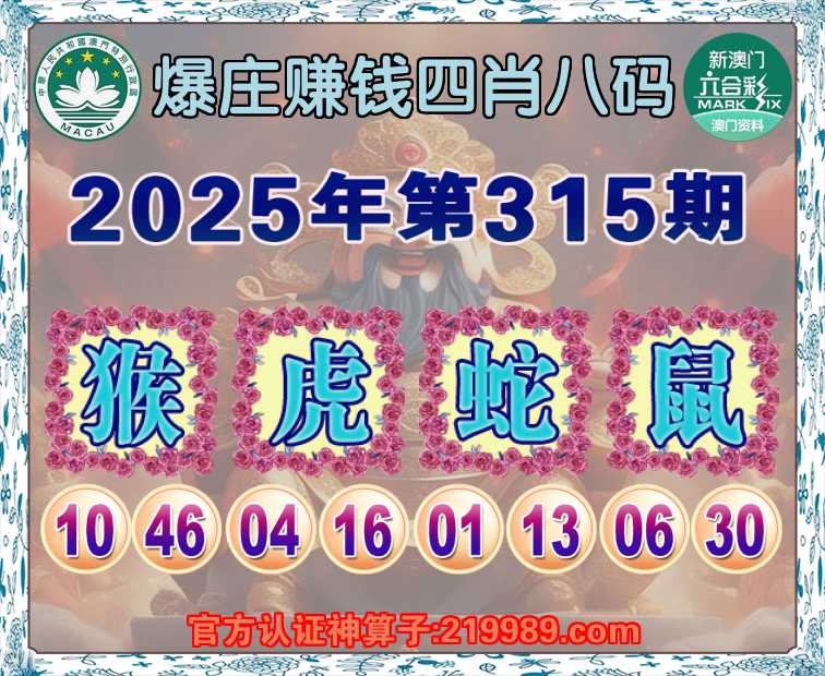 315期:『爆庄赚钱』 🚲四肖八码🚲【猴蛇鼠】开:虎04
