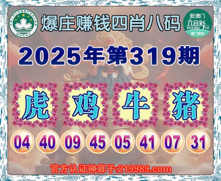 319期:『爆庄赚钱』 🚲四肖八码🚲【虎牛猪】开:鸡45