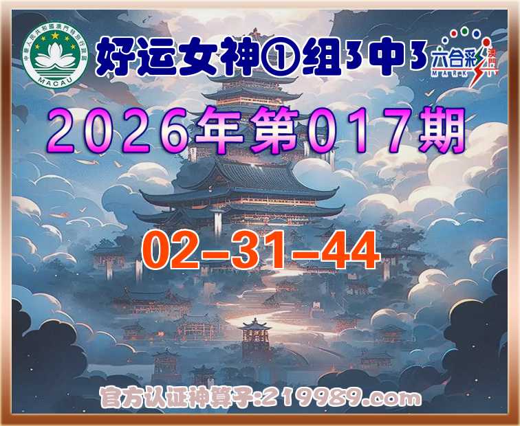017期:【好运女神】 👈①组3中3👈【02-31-44