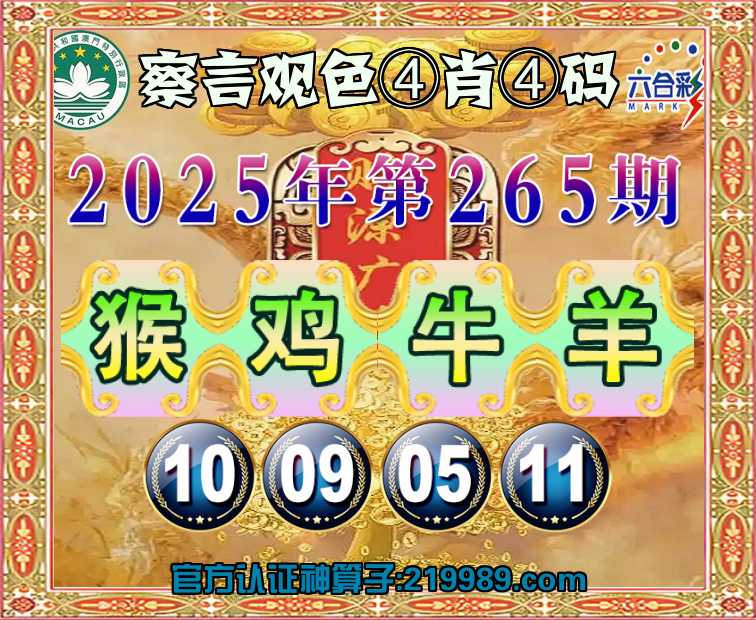 265期:【察言观色】 🥉④肖④码🥉【鸡牛羊】【10.09.05.11】开:猴10