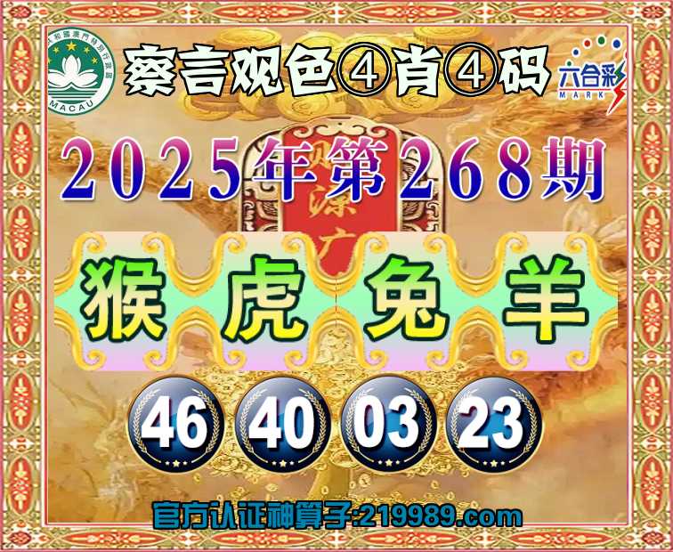 268期:【察言观色】 🥉④肖④码🥉【虎兔羊】【46.40.03.23】开:猴10