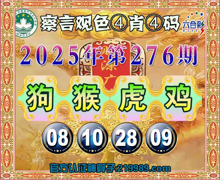 276期:【察言观色】 🥉④肖④码🥉【狗猴虎】【08.10.28.09】开:鸡09