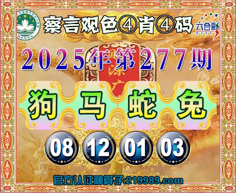 277期:【察言观色】 🥉④肖④码🥉【狗马蛇兔】【08.12.01.03】开:虎16
