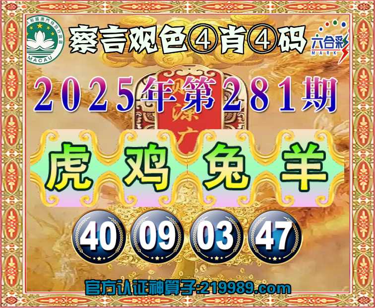 281期:【察言观色】 🥉④肖④码🥉【虎鸡兔】【40.09.03.47】开:羊47