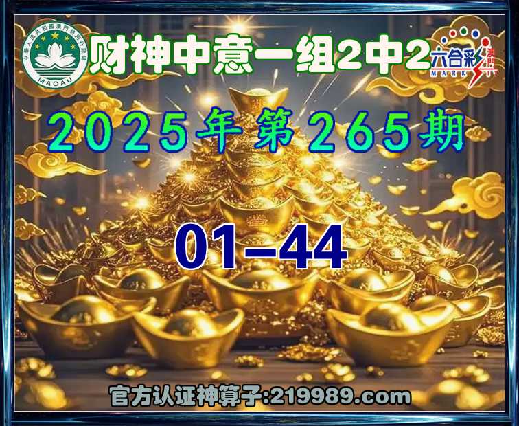 265期:《财神中意》 😜一组2中2😜【01-44
