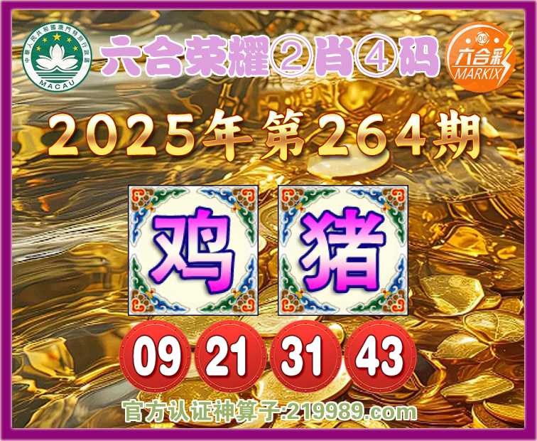 264期:『六合荣耀』 ♥️②肖④码♥️【鸡】【09.21.31.43】开:猪43