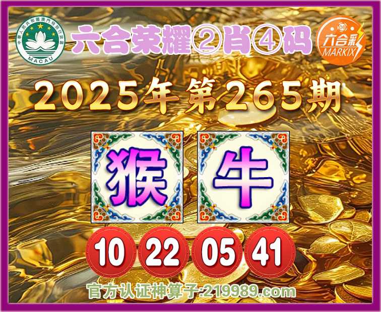 265期:『六合荣耀』 ♥️②肖④码♥️【牛】【10.22.05.41】开:猴10