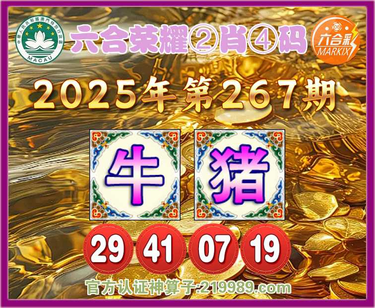 267期:『六合荣耀』 ♥️②肖④码♥️【猪】【29.41.07.19】开:牛29