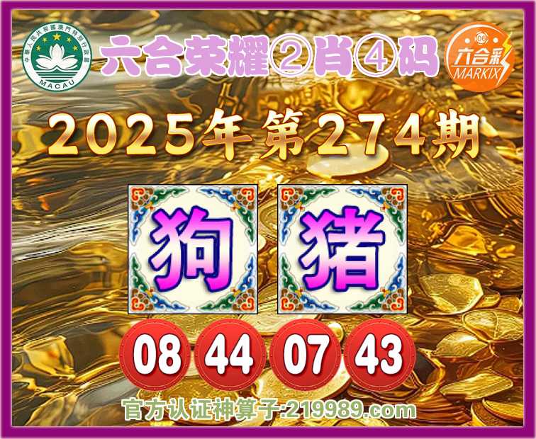 274期:『六合荣耀』 ♥️②肖④码♥️【猪】【08.44.07.43】开:狗44