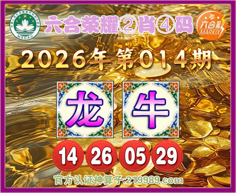 014期:『六合荣耀』 ♥️②肖④码♥️【牛】【14.26.05.29】开:龙26