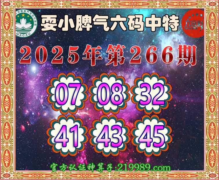 266期:『耍小脾气』 🧩六码中特🧩【07.08.32.41.43.45】开:41