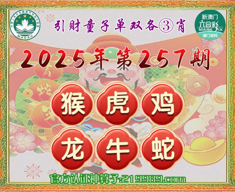 257期: 🏇『引财童子』 🏇单双各③肖🏇【猴..鸡.龙.牛.蛇】开:虎28