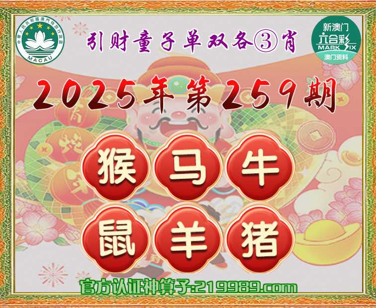 259期: 🏇『引财童子』 🏇单双各③肖🏇【猴.马.牛.鼠..猪】开:羊47
