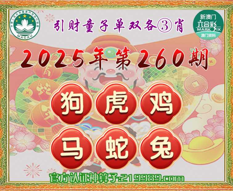 260期: 🏇『引财童子』 🏇单双各③肖🏇【狗.虎.鸡.马.蛇.】开:兔03