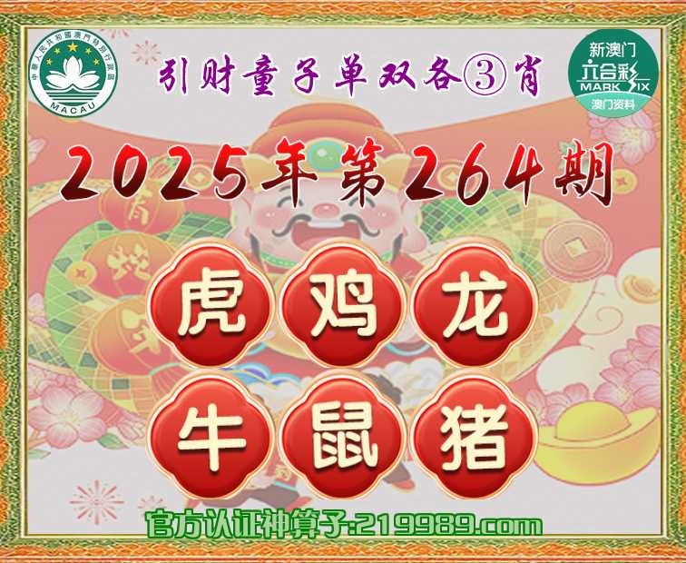 264期: 🏇『引财童子』 🏇单双各③肖🏇【虎.鸡.龙.牛.鼠.】开:猪43